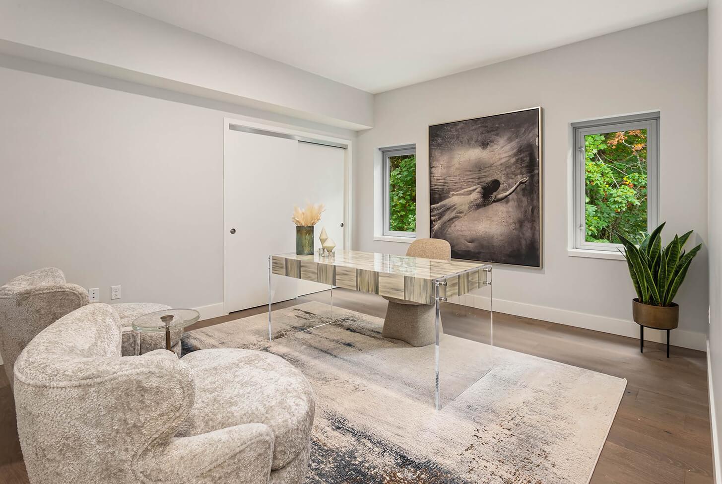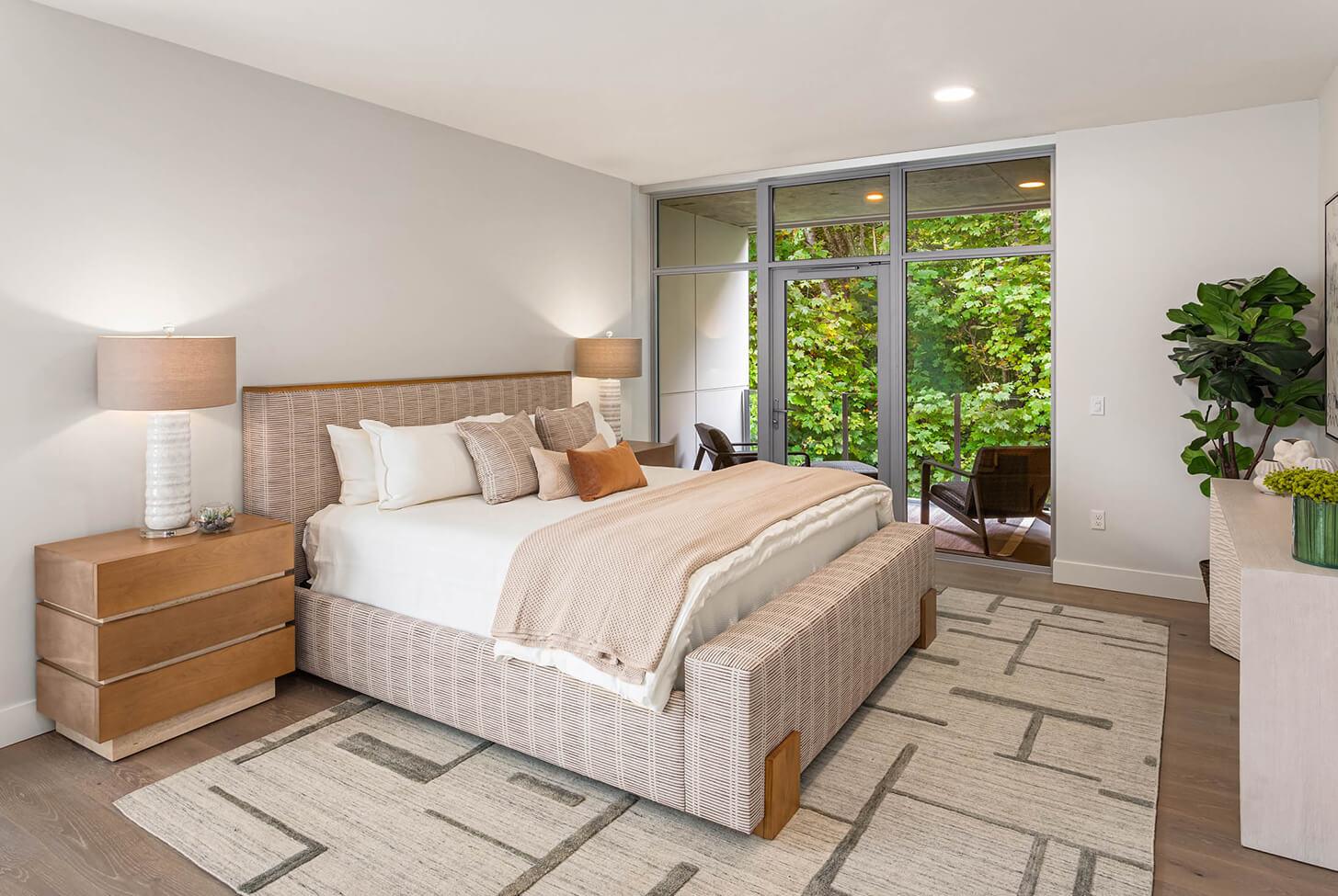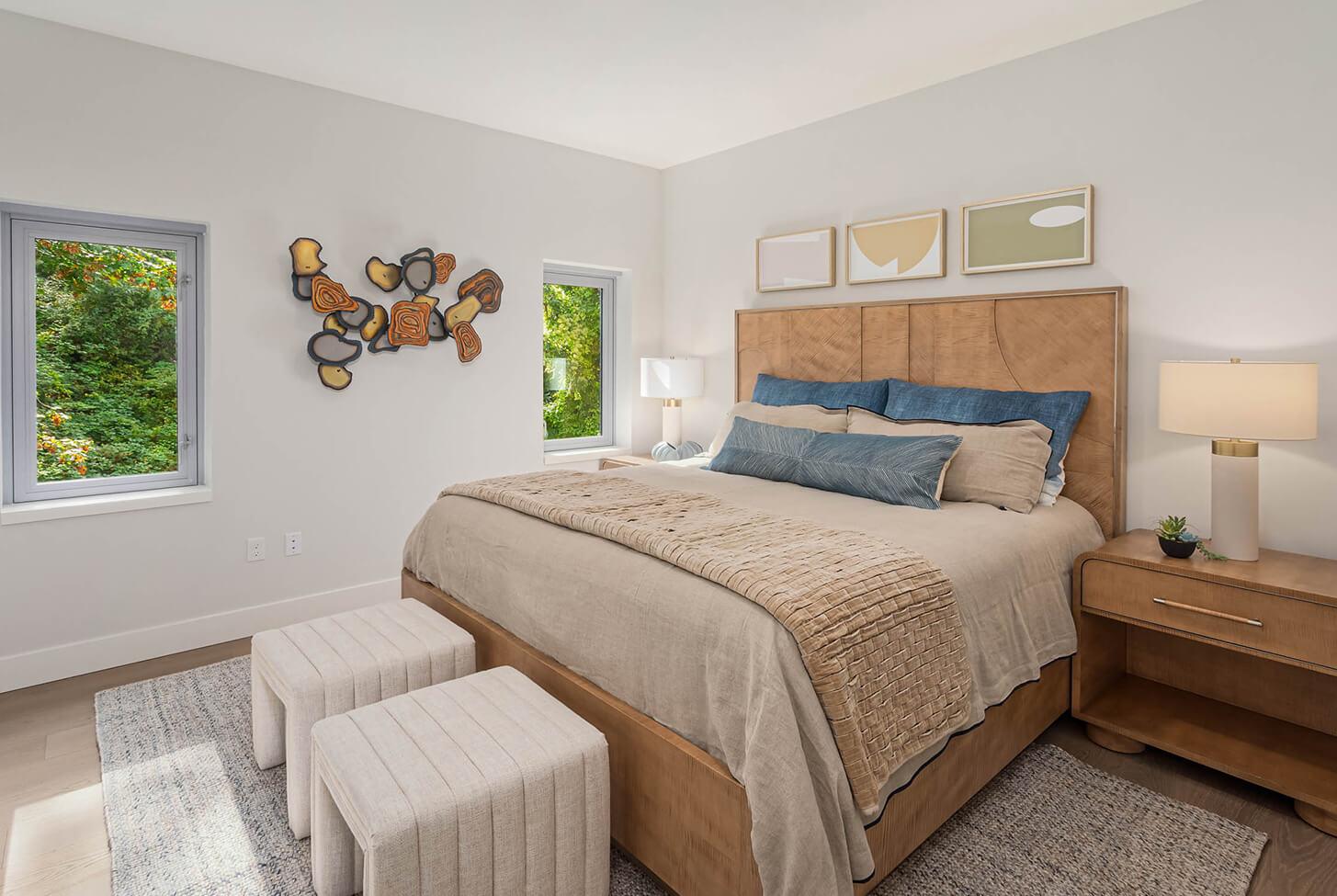 Urban Interiors furnished this penthouse at the Infinity Shore Club Residences with clean-lined pieces, layered textures, and thoughtfully styled accessories to enhance its panoramic waterfront setting.